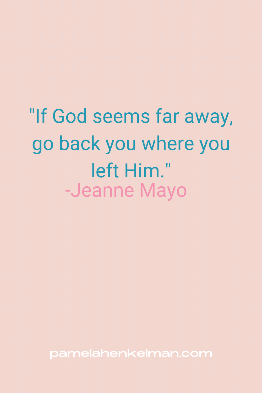 “If God seems far away, go back to where you left Him.”- Jeannie Mayo
