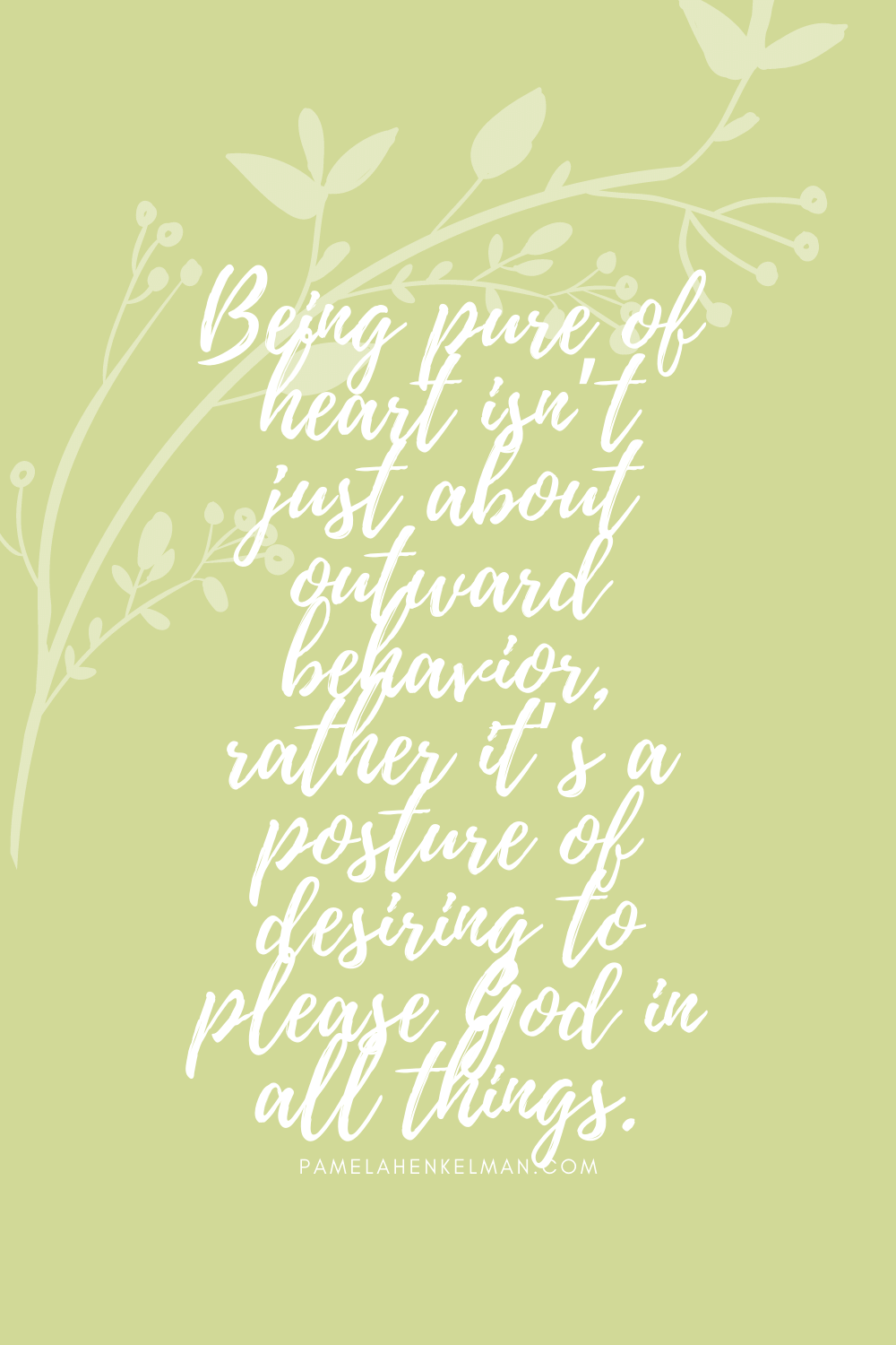 Being pure of heart isn’t just about outward behavior, rather it’s a posture of desiring to please God in all things. In our actions, attitudes, motives, and the way we treat others. A pure heart that is set towards God, is teachable. It wants to learn, grow, and change. It wants freedom from the things that trip us up and creates distance between us and our Maker. A pure heart is surrendered, and therefore teachable.