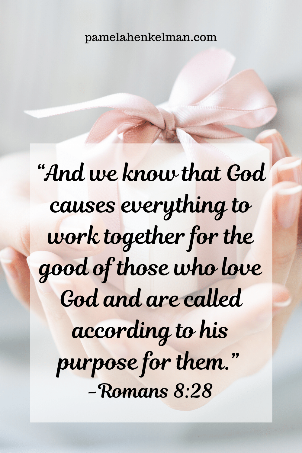 “And we know that God causes everything to work together for the good of those who love God and are called according to his purpose for them.” Romans 8:28