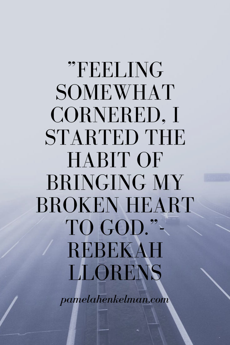 Feeling somewhat cornered, I started the habit of bringing my broken heart to God. In the morning I opened God’s Word and stayed in it, meditating and asking God to sow it a little deeper into me. I remember the psalms of lament and anger, and sometimes I used them to scream to God. I also read the stories of acts of faith, when people didn’t quite know what God would do but went forward anyway. God’s Word touched me in a special way during that season. I was becoming new, finding and keeping hope, even as I held my questions and frustration.