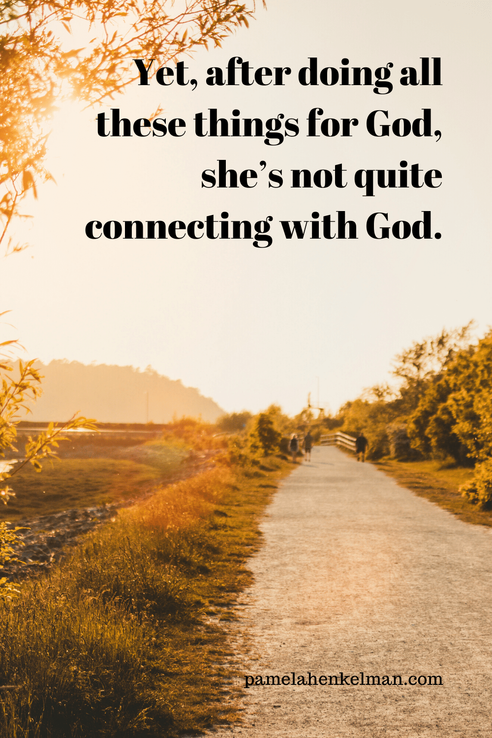 Yet, after doing all these things for God, she’s not quite connecting with God. She reads her Bible, but there’s no wonder jumping off the pages. She can’t always relate to the stories or understand how they apply to her. She tries to listen for God’s voice, but mostly she hears the lies of condemnation and shame, or she hears nothing at all. This reinforces her lack, which causes her to move farther away from God.