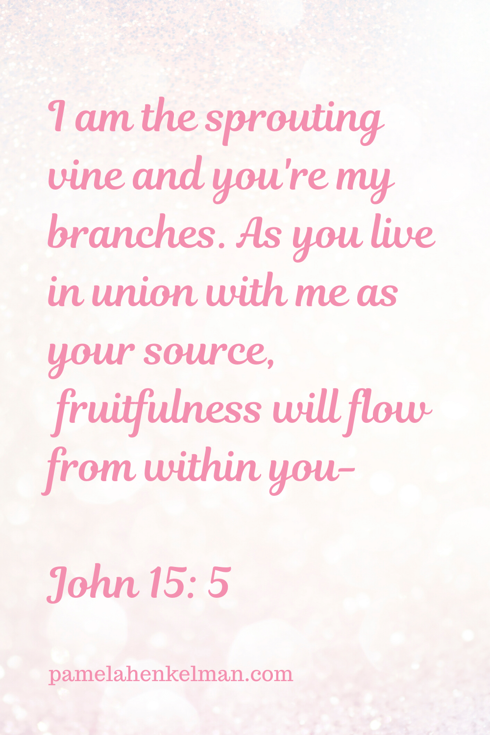 “I am the sprouting vine and you’re my branches. As you live in union with me as your source, fruitfulness will stream from within you-but when you live separately you are powerless.” John15:5